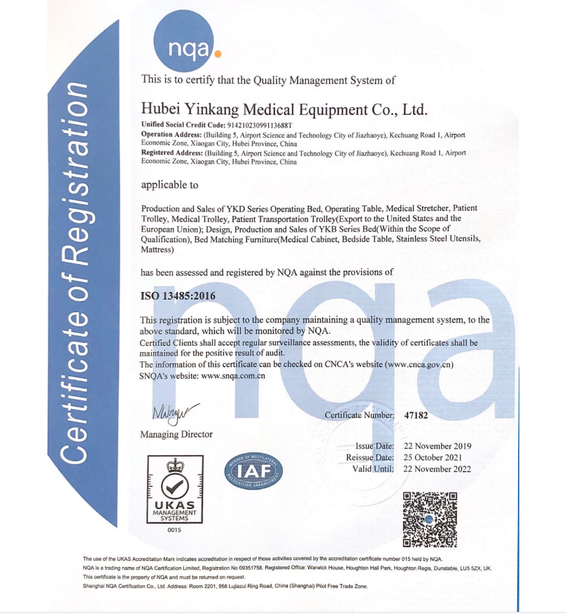 Hubei Yinkang Medical Equipment Co., Ltd is a professional manufacturer of medical beds and other medical equipment. The company is located in Xiaogan Airport Economic Zone. The Xiaogan Airport Economic Zone is located in the large logistics complex corridor composed of aviation, railway, water transportation and highway in the north of Wuhan. It is 5 kilometers away from Wuhan Tianhe Airport and 16 kilometers away from the main urban area of Wuhan. It is connected to the largest freight railway marshalling station in Asia—— The distance between Wuhan North Marshalling Station of Beijing-Guangzhou Railway is 13 kilometers, and it is 36 kilometers away from Wuhan Yangluo Deep-water Port. It has the geographical advantage of "not Wuhan, but better than Wuhan".